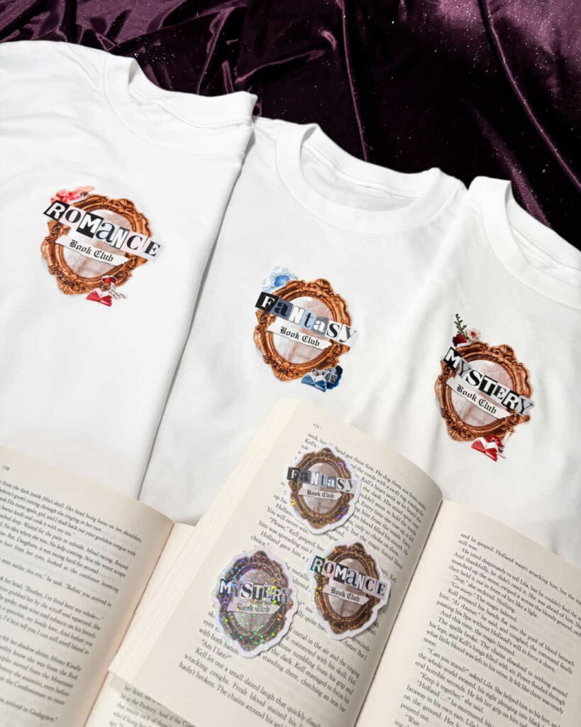 From unique stickers to stunning tees to Kindle charms, this business has something for every reader on your list. This site is definitely for those who prefer romantasy, darker romance, or something with a bit of an edgy look. We’re obsessed with all the color ways and can’t get over the variety you can find on the site!